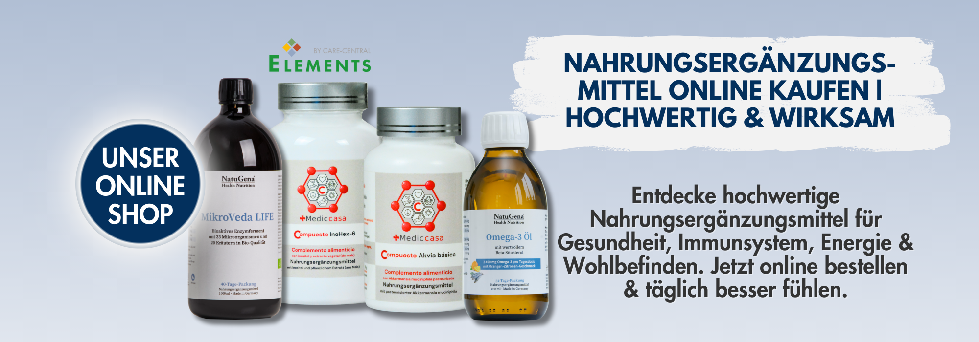 Entdecke hochwertige Nahrungsergänzungsmittel für Gesundheit, Immunsystem, Energie & Wohlbefinden. Mediccasa, NatuGena, TISSO und mehr. Jetzt online bestellen & täglich besser fühlen.